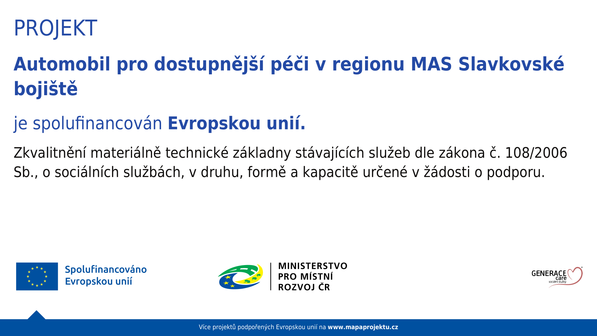 Pořízení automobilů pro pečovatelskou službu GENERACE CARE, z.ú.